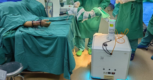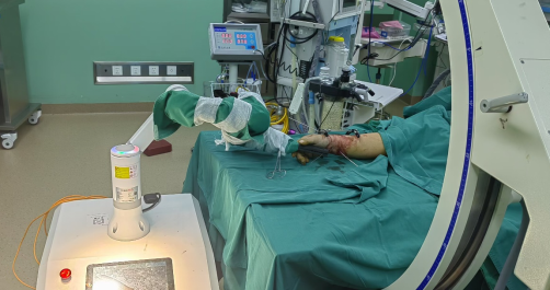 4.安装六轴机器人导向器并包裹无菌巾,摆放合适体位。