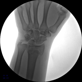 患者男,48岁,主诉外伤致右腕部疼痛,活动受限7天。于南阳市骨科医院行手法整复后患者对治疗效果不满意,遂手术治疗。